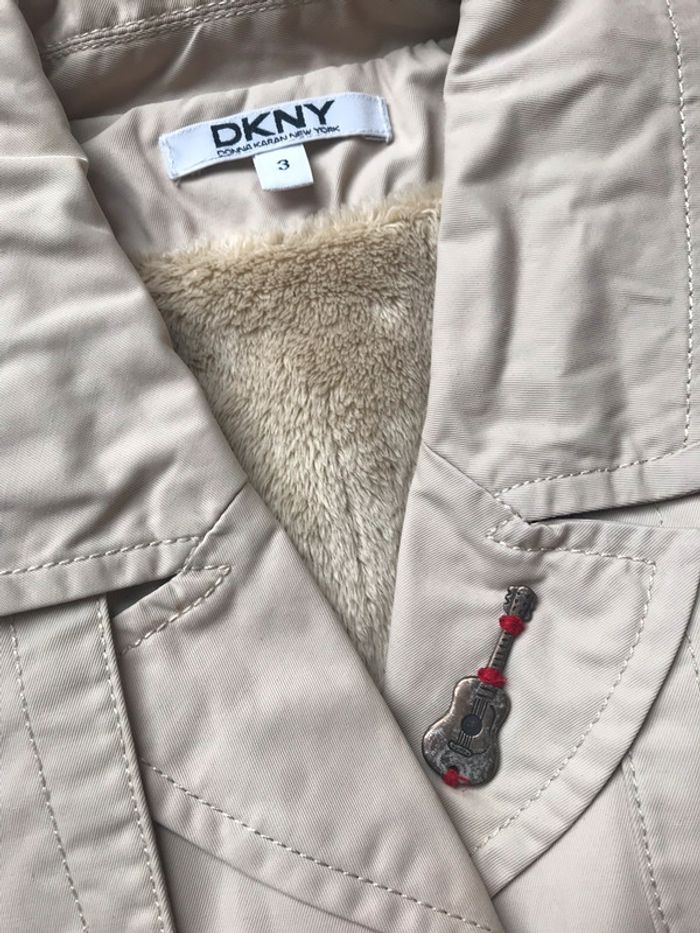 Trench chaud DKNY fille 3 ans Fermeture éclair + boutons Le petit bijou « guitare » est « oxydé » et il y a une petite tâche sur la manche (qui part peut-être au lavage) sinon très bon état #petchou94