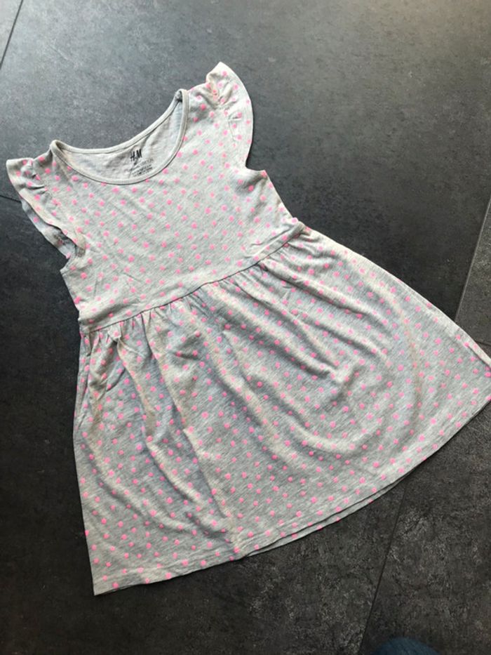Robe H&M 2-4 ans (98-104 cm) Gris avec pois rose fuchsia 95% coton - 5% viscose #petchou94