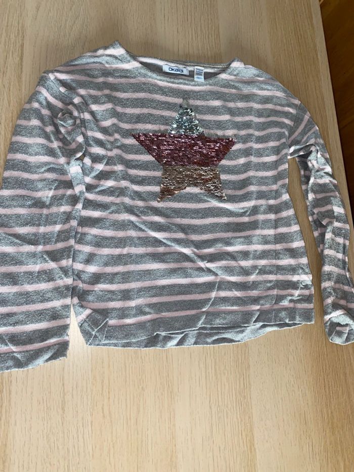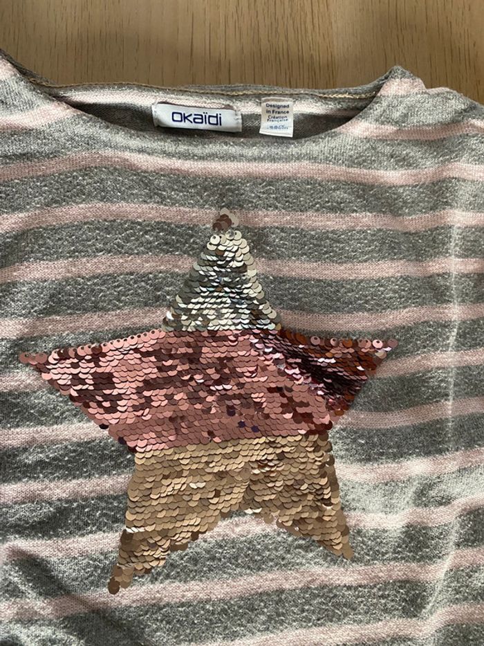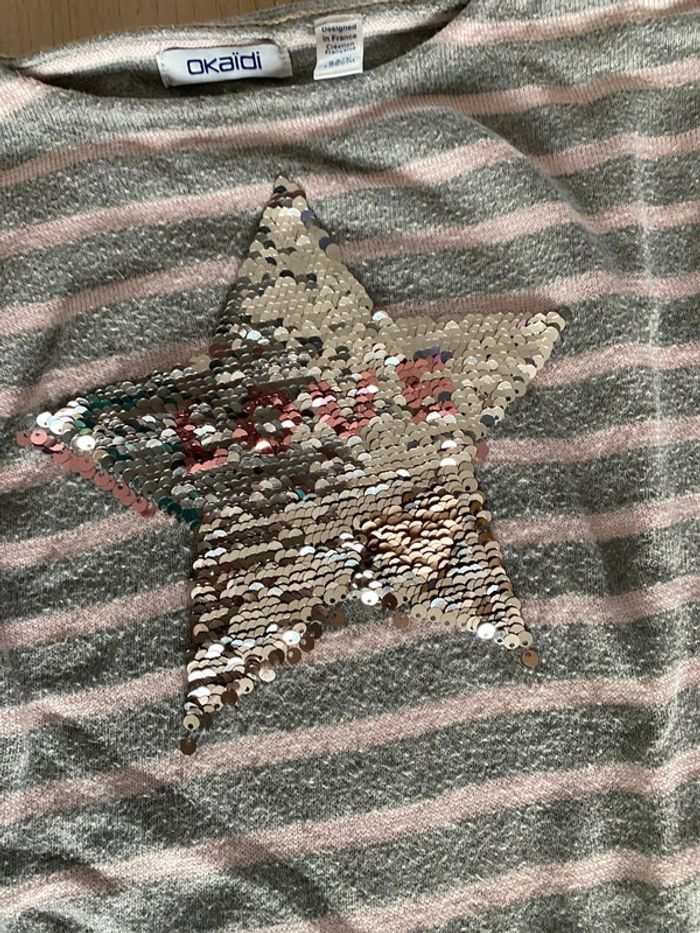 Pull léger fille 8 ans okaidi rayures gris rose étoile sequins