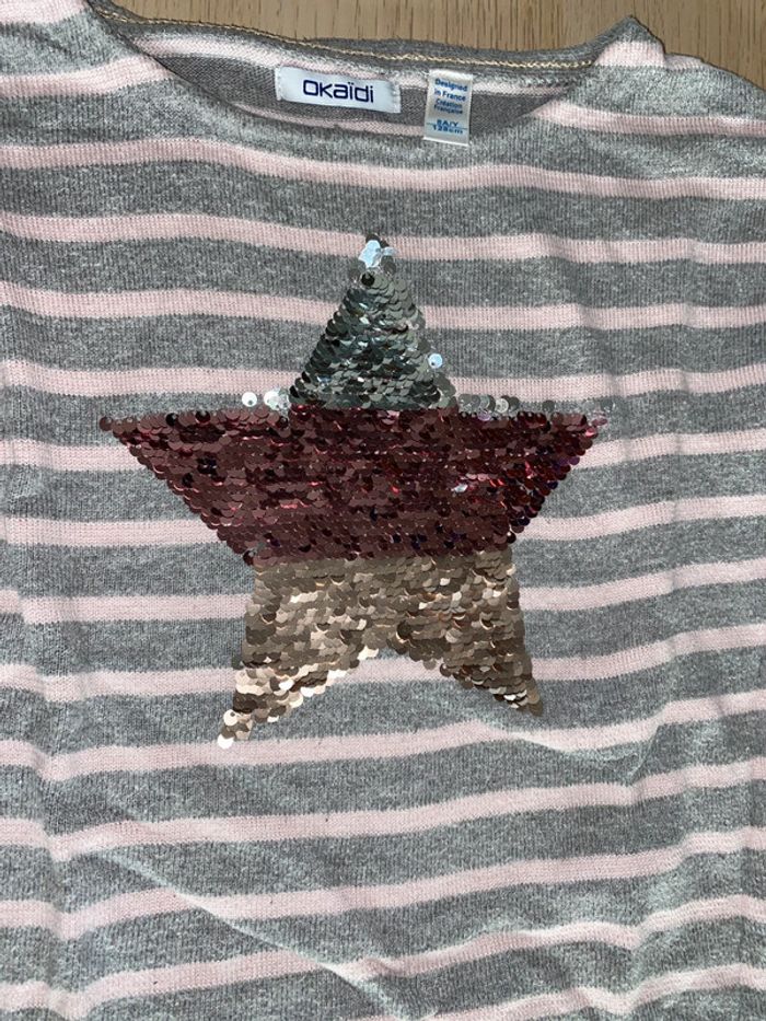Pull léger fille 8 ans okaidi rayures gris rose étoile sequins - photo numéro 4