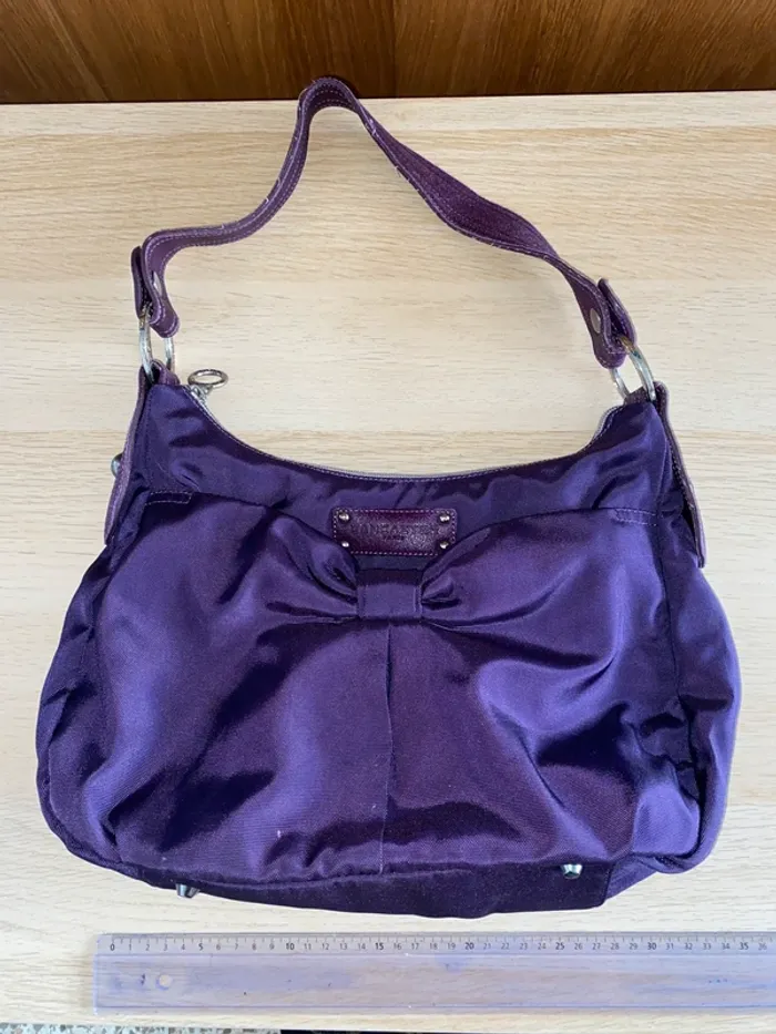 Sac à main violet petit noeud Lancaster tissu Paris prune - photo numéro 1