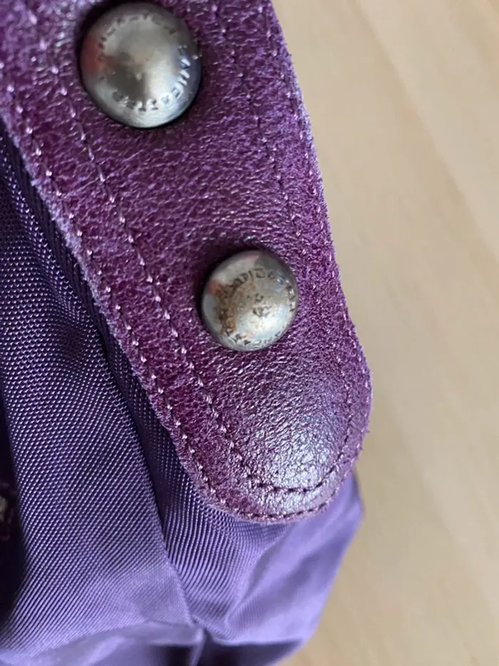 Sac en bon état, il y a une petite tache blanche devant et l’anse à des marques d’utilisation. Le tissu est un peu taché à l’intérieur. Il y a un de rouille sur certains clous #vichnini_sac
