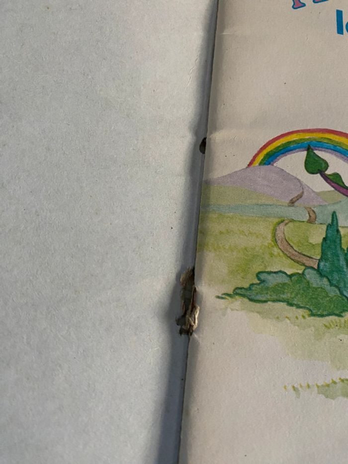 Livre en état correct : les agrafes ont rouillé, la dernière page est abîmée en haut, il y a des marques dans le coin en haut à droite. La reliure est fragile (photo 3) #vichnini_livre #vichnini_poney