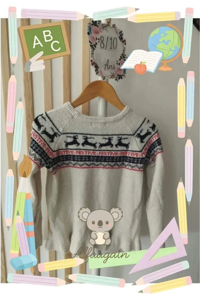 Pull noël blanc h&M 8/10ans - photo numéro 1