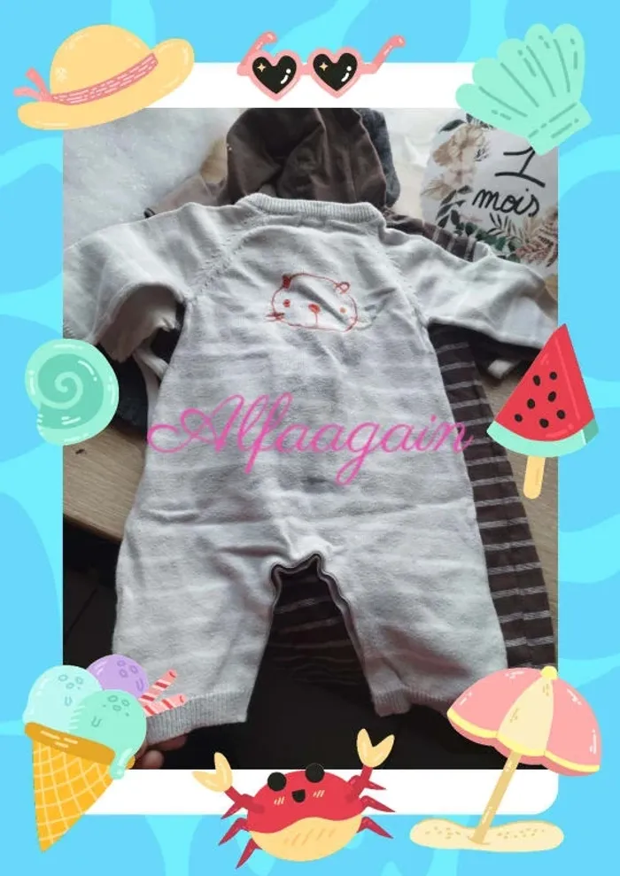 Petit lot 1mois comprenant Un gilet zippé gris en laine bouillie obaibi avec poches . Un body taupe ouverture avant petit kimbaloo Une combi marron ouverture pressions avant avec capuche prends ton pouce , pressions à l'entrejambe Une combi grise avec broderie au dos , ouverture avant par boutons et pressions à l'entrejambe. Grain de blé Le tout en parfait état . A vendre 10€ --------------------------- ✏️Informations générales ✏️ 📩Expédition dans la journée en général -hors weekend. 🚭Maison non fumeur / sans animaux 📅Pas de réservation 📸Pas de photo porté 👛 Bon plan Envoi à 99ct (+20% récupéré en bon d'achat) possible uniquement pour les français- me contacter pour plus d'infos 😉 #alfaagain1moisgarcon #prendstonpouce #kimbaloo #obaibi #graindeble