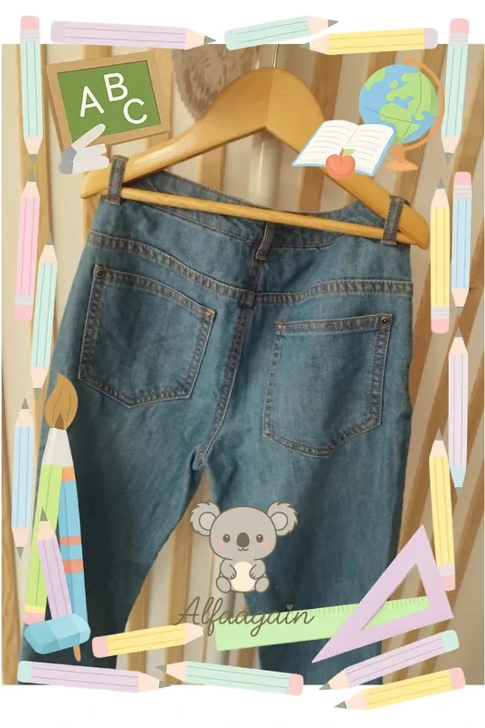 Jean effet destroy/troué. Ceinture intérieure réglable ,poches et fermeture pressions. Coupe taille haute . Marque Vertbaudet taille 10ans . Neuf lavé A vendre 8€ --------------------------- ✏️Informations générales ✏️ 📩Expédition dans la journée en général -hors weekend. 🚭Maison non fumeur / sans animaux 📅Pas de réservation 📸Pas de photo porté 👛 Bon plan Envoi à 99ct (+20% récupéré en bon d'achat) possible uniquement pour les français- me contacter pour plus d'infos 😉 #alfaagain10ansfille #vertbaudet