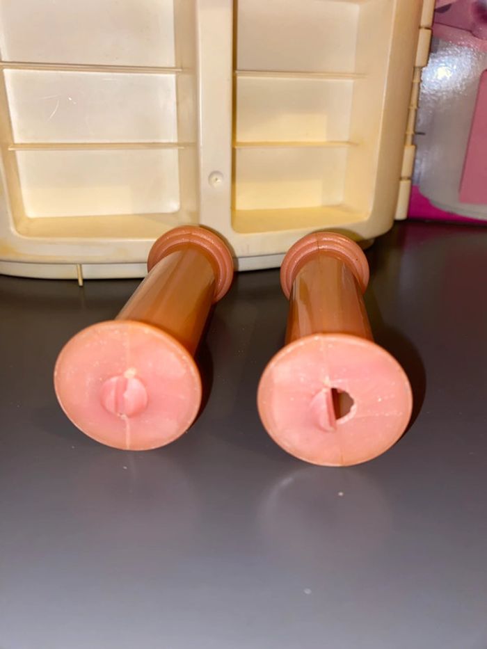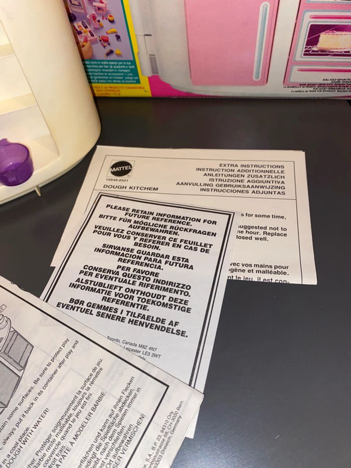Le plastique a un peu jauni, les charnières des blocs roses sont cassées. Le couvercle a un côté cassé à l’intérieur et un bout d’un pilier est cassé, ça ne tient pas très bien. #vichnini_jouet #vichnini_mattel #vichnini_barbie #vichnini_poupee