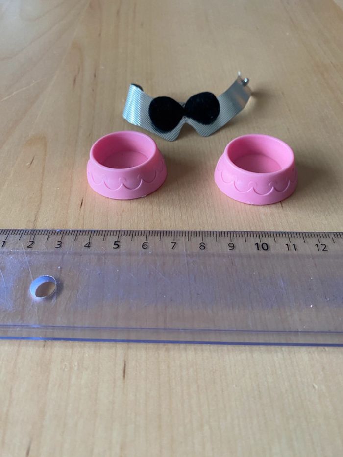 Accessoires du chien de barbie : 2 gamelles et un collier en très bon état #vichnini_jouet #vichnini_poupee #vichnini_mattel #vichnini_barbie