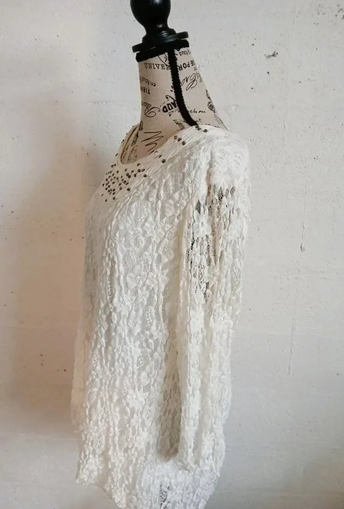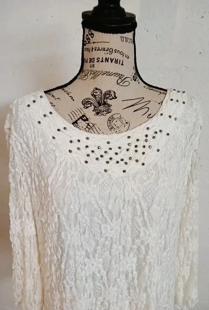 🤍 Pull blanc dentelle doublé – Taille 42/44 – Très bon état - photo numéro 2