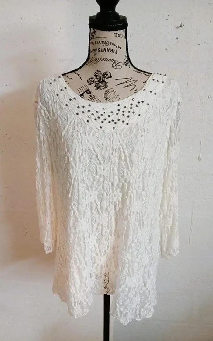 🤍 Pull blanc dentelle doublé – Taille 42/44 – Très bon état - photo numéro 1