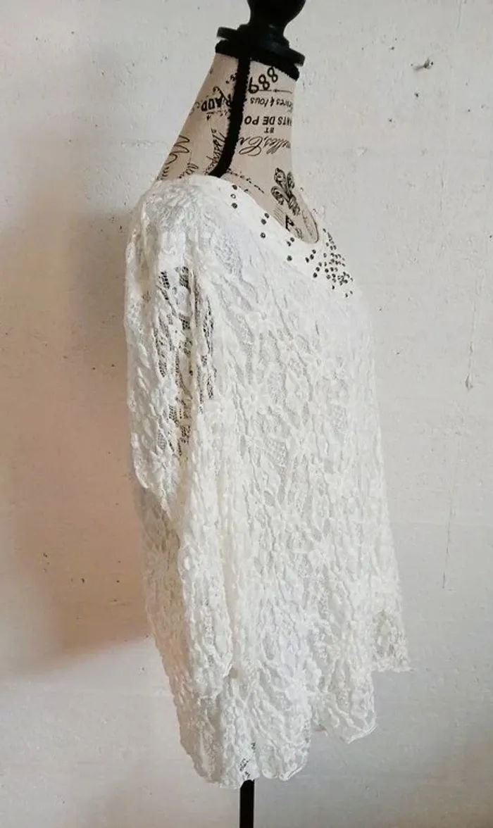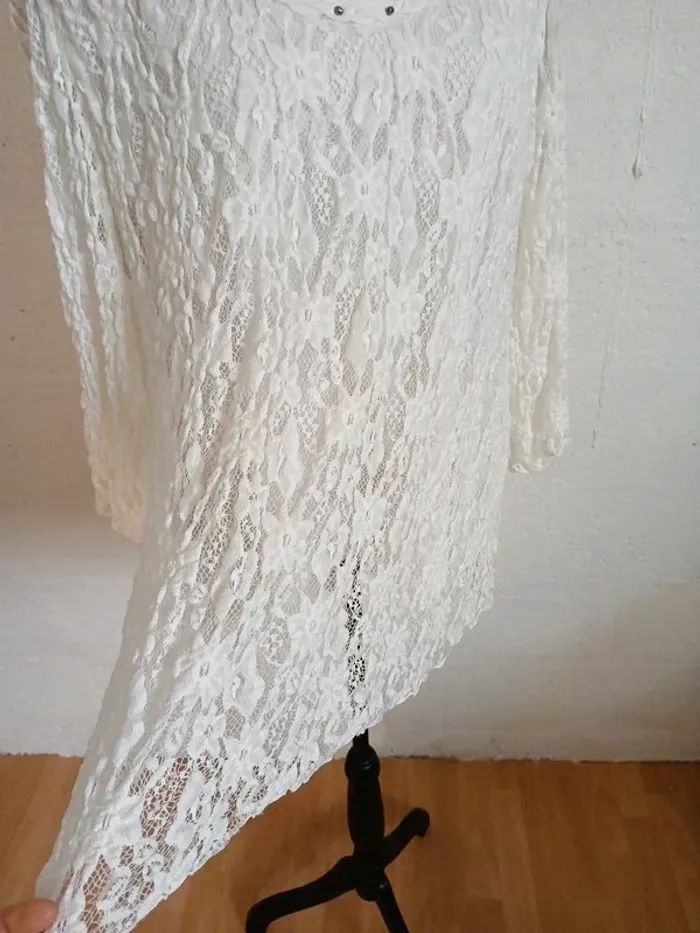🤍 Pull blanc dentelle doublé – Taille 42/44 – Très bon état - photo numéro 3