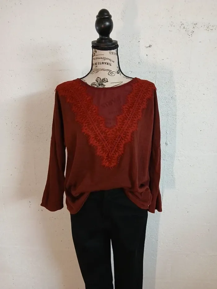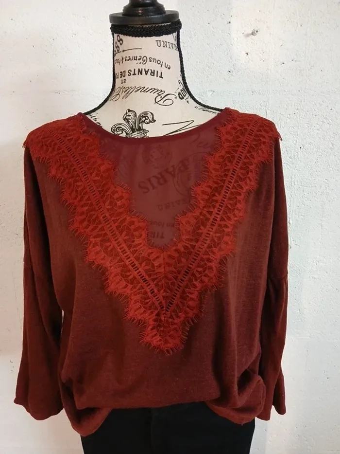 🍷 Blouse manches longues bordeaux – Daphnéa – Taille L - photo numéro 3