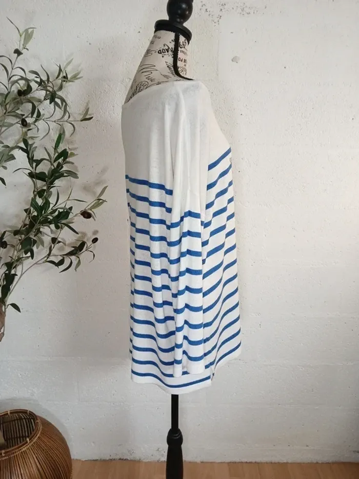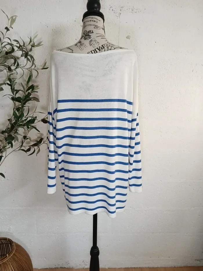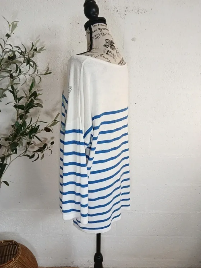 🦋 Pull blanc & rayé bleu – Motif papillon strass – Riu – Taille 44/46 - photo numéro 7