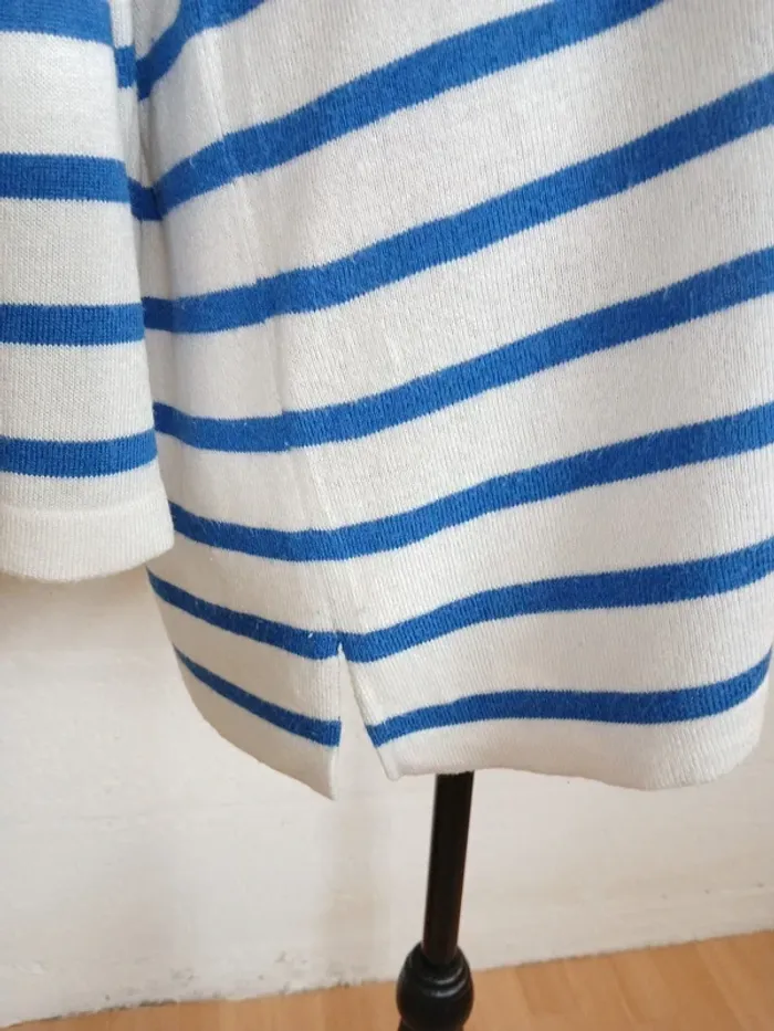 🦋 Pull blanc & rayé bleu – Motif papillon strass – Riu – Taille 44/46 - photo numéro 10
