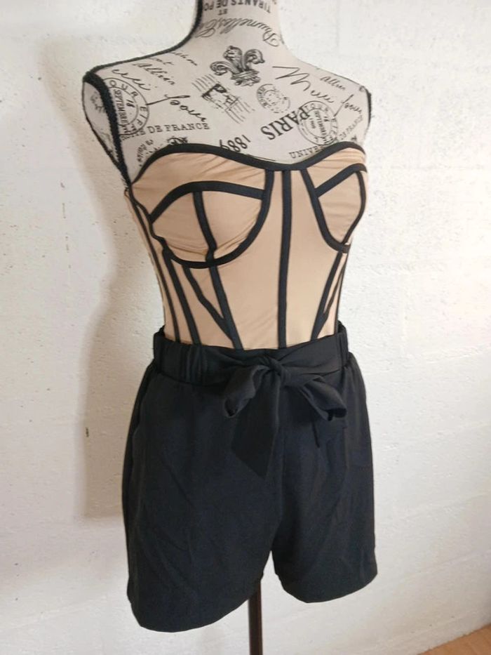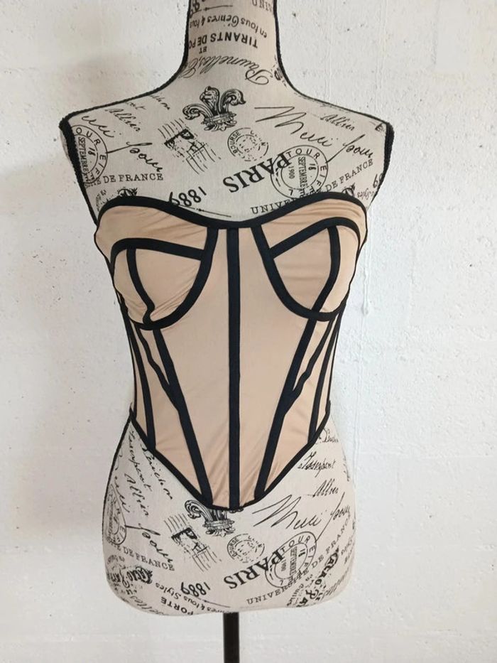 💥 Bustier style corset beige & noir – Taille XS – Sexy & tendance - photo numéro 2