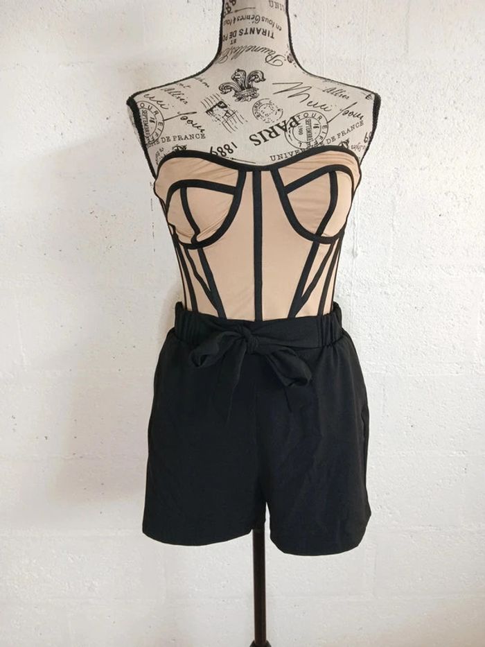 💥 Bustier style corset beige & noir – Taille XS – Sexy & tendance - photo numéro 3