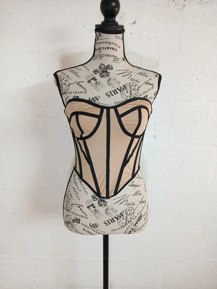 💥 Bustier style corset beige & noir – Taille XS – Sexy & tendance - photo numéro 1