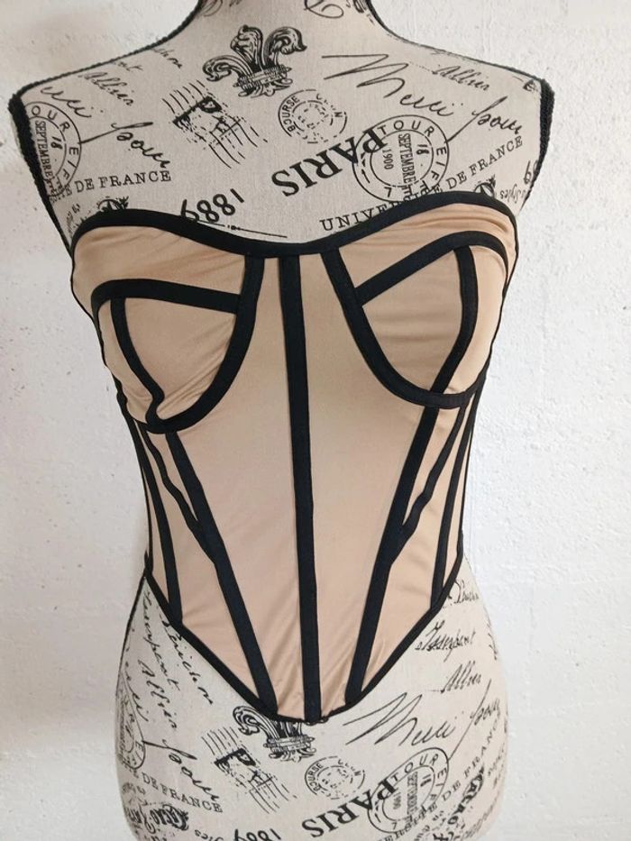 💥 Bustier style corset beige & noir – Taille XS – Sexy & tendance - photo numéro 5