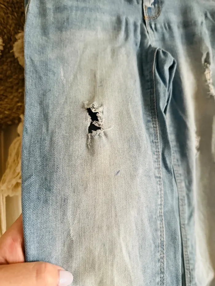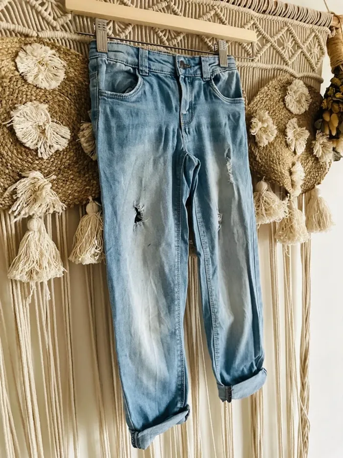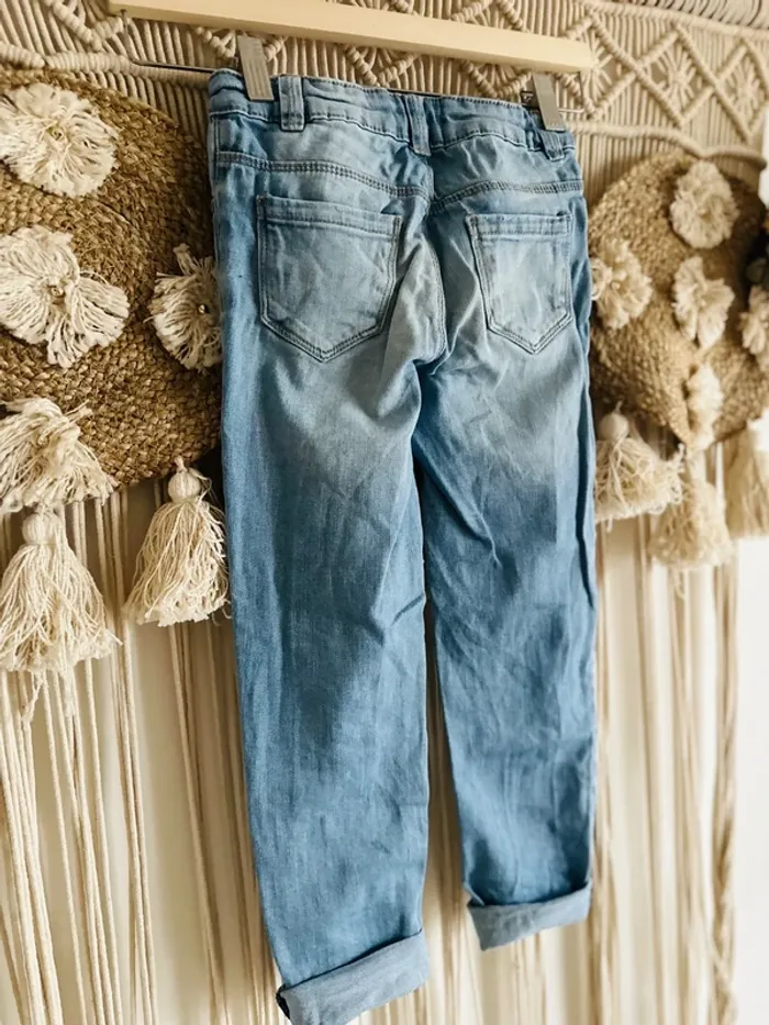 Jean coupe boyfriend troué (minis taches de crayon à peine visible) 7 ans #7ans #7ansfille #jeantrouéfille7ans #jeanfille7ans