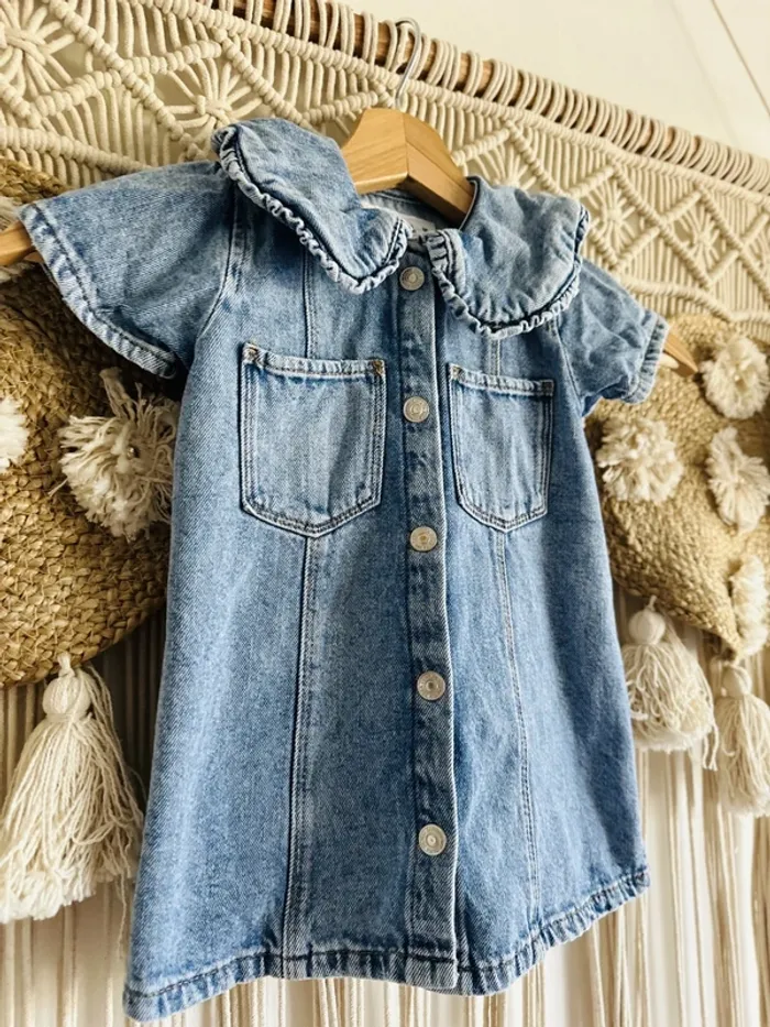 Magnifique robe en jean manches courtes col Claudine, 12/18mois de chez Zara. Portée 2/3 fois, comme neuve. Collection actuelle. #1218moiszara #zara #zarababy #robebebefille #robebebefillezara #zarababygirl #colclaudine #robecolclaudine