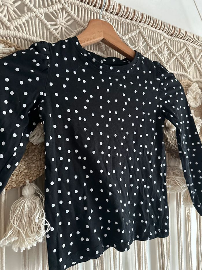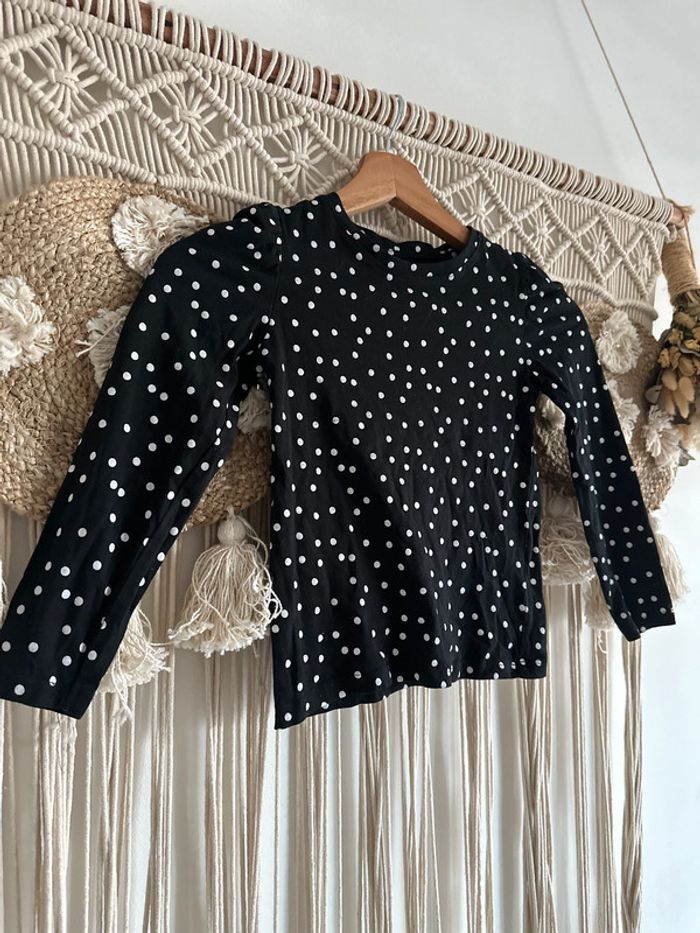 T-shirt manches longues noir à pois blanc 6 ans, NEUF #6ans #6ansfille #pois