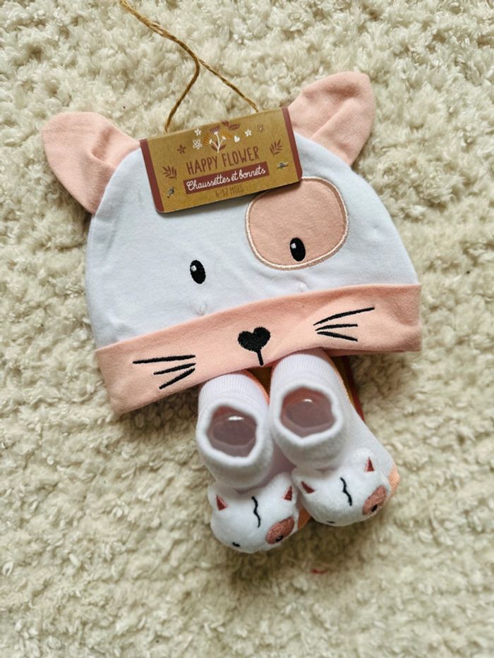 Ensemble bonnet et petites chaussettes assorties, Neuf avec étiquette