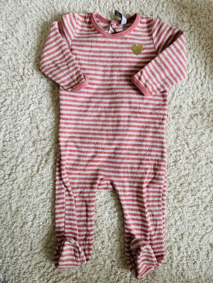 Pijama rayé détail coeur doré 12 mois, très bon état. #12mois#12mois #12moisfille #babygirl #bebefille