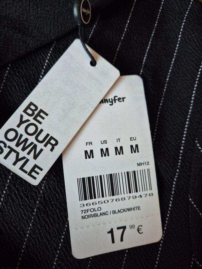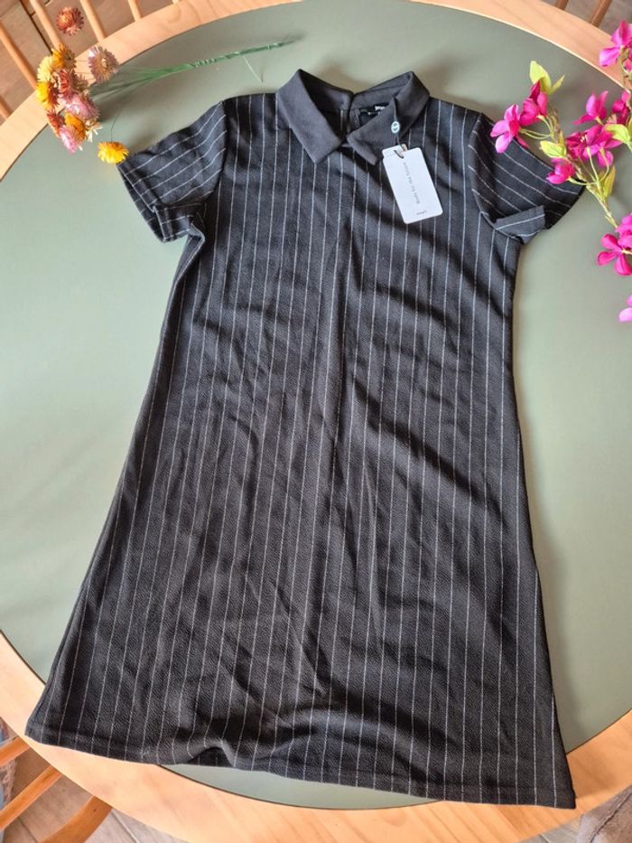 Robe noire à lignes blanches, col Claudine, taille 38, jennyfer