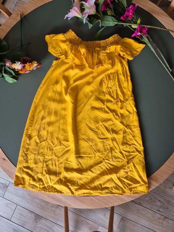 Robe jaune, fluide, col bateau, taille 38, pimkie