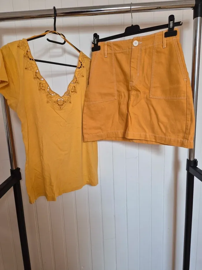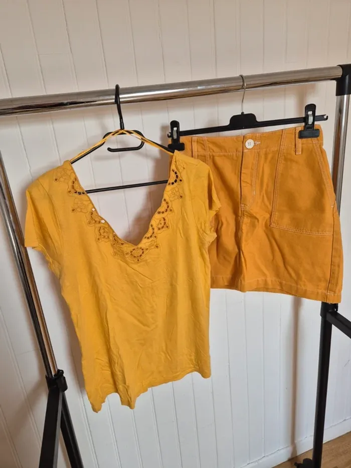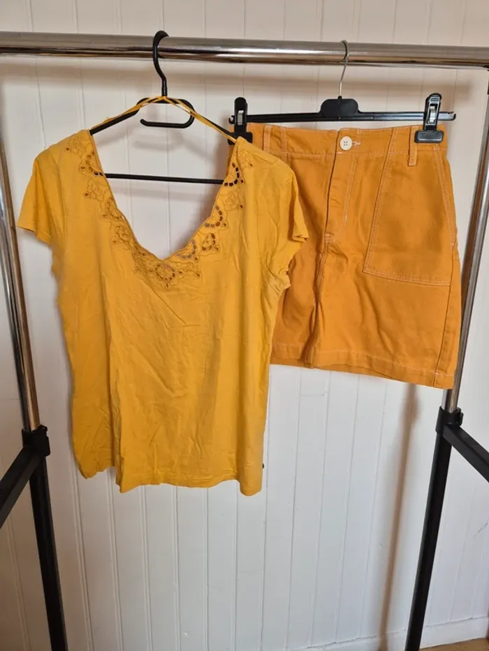 Ensemble femme jupe et tee shirt jaune pimkie bonobo