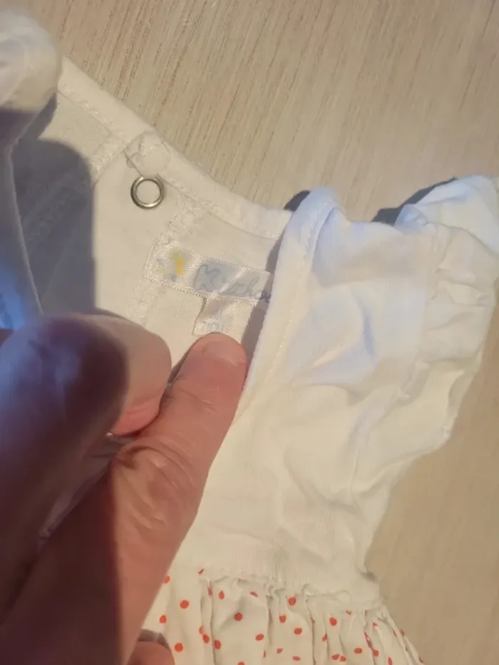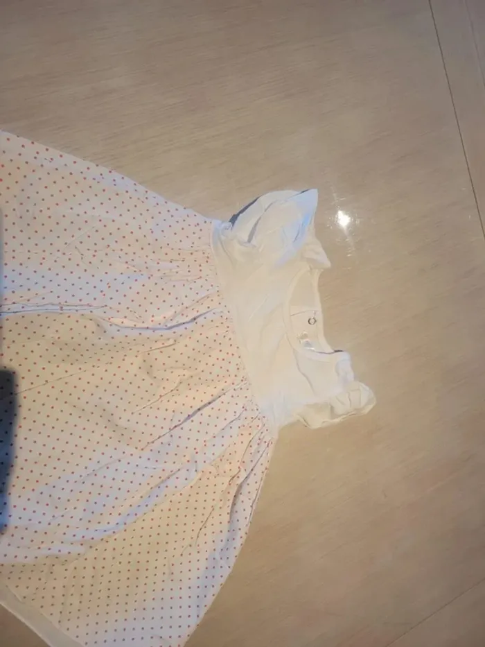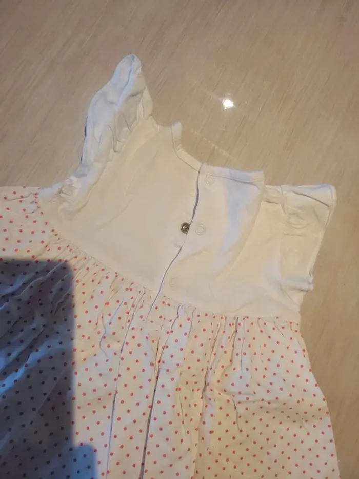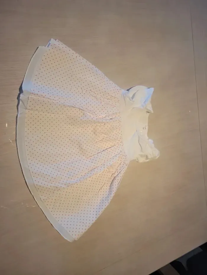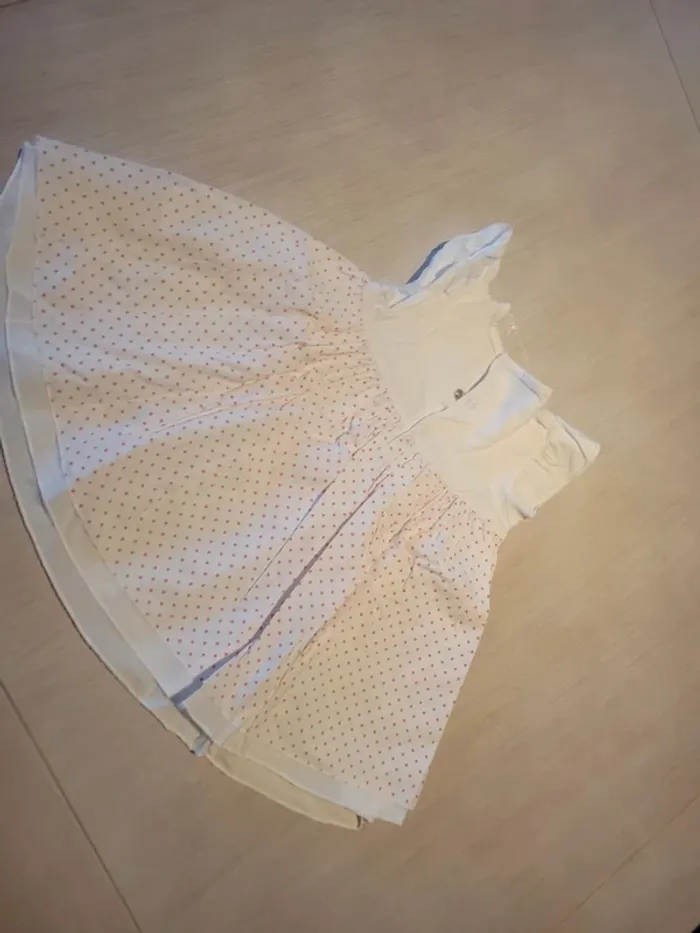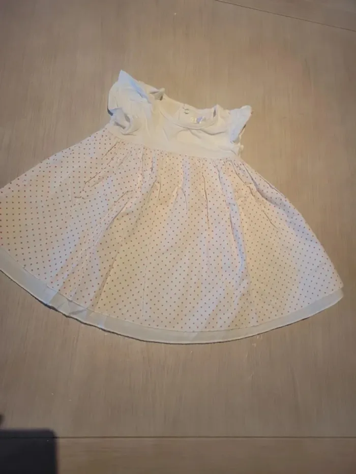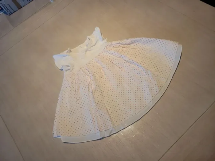 Belle robe été Kitchoun Taille 9 mois. Entièrement doublée. Blanche à pois rouge. Fermeture par pression sur le derrière. Très bon état #33coco_fille9mois