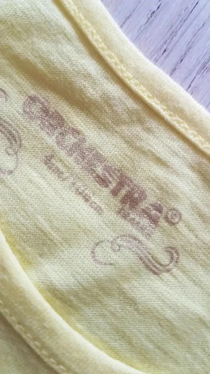 Bonjour, Débardeur fille Orchestra taille 4 ans. Couleur jaune avec motif fleur. Très bon état #33coco_fille4ans