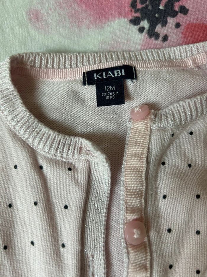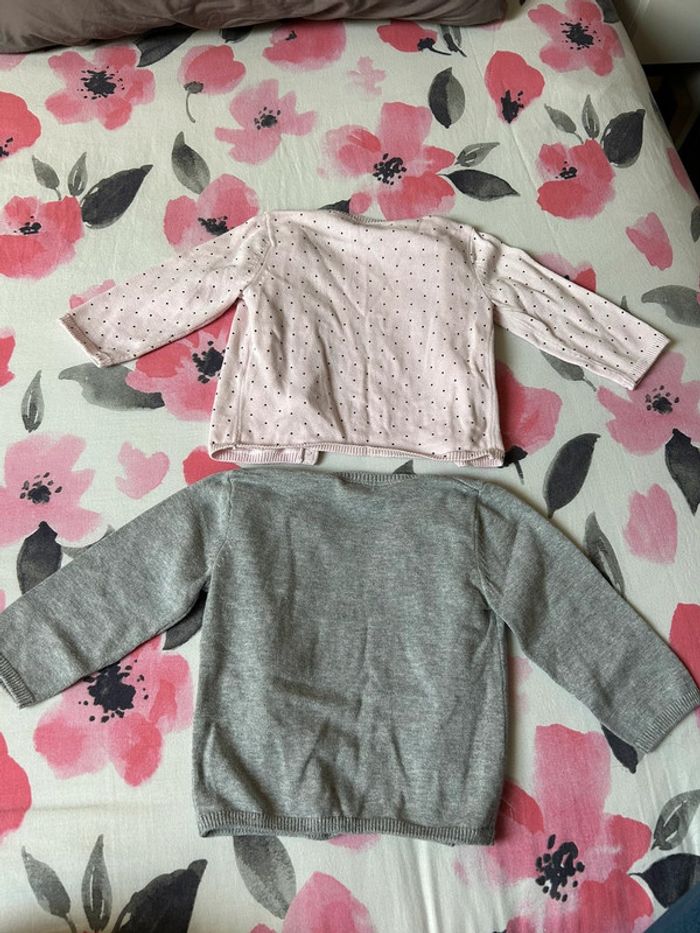Lot de 2 gilets gris et rose à pois état neuf taille 12 mois D’autres articles dans mon dressing n’hésitez pas les remises sont activées