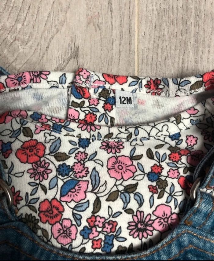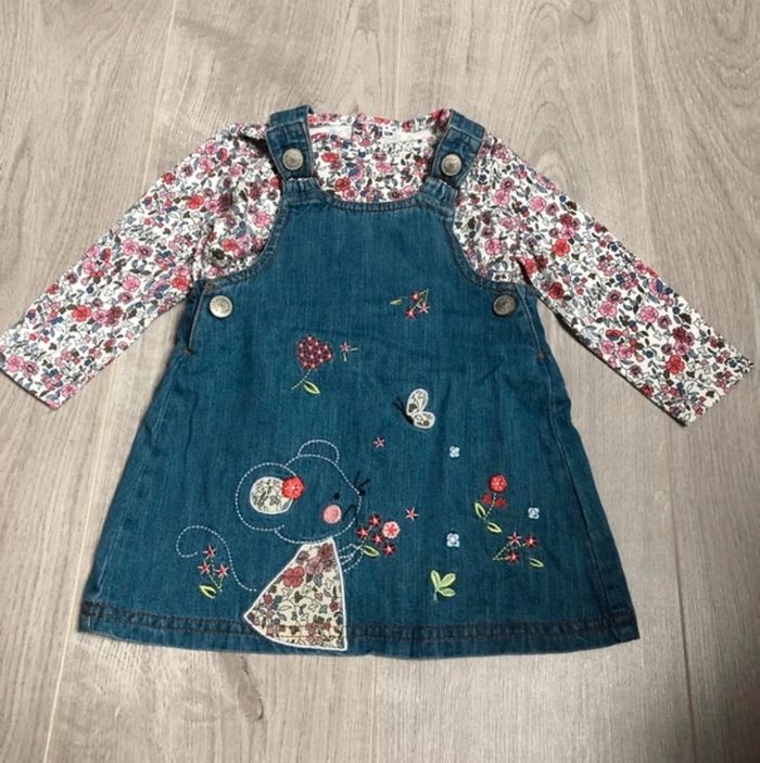 Ensemble Tee shirt fleuri et robe en jean motif souris comme neuf taille 12 mois D’autres articles dans mon dressing n’hésitez pas