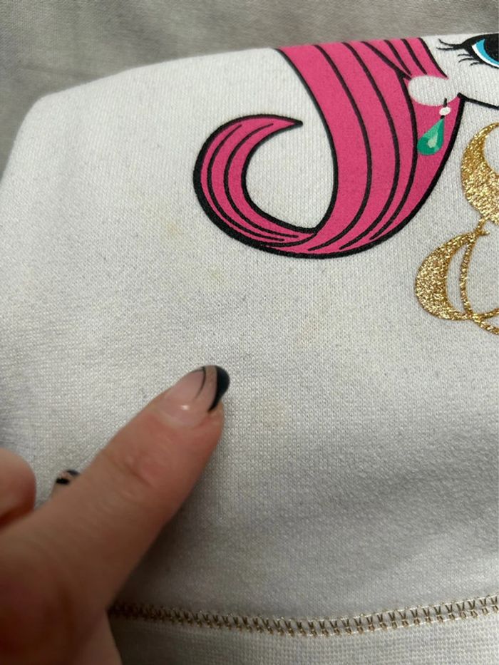 Pull shimmer and shine pas mal porté à quelques légères taches voir dernière photos et une trace de feutre taille 4 ans 104cm D’autres articles dans mon dressing n’hésitez pas