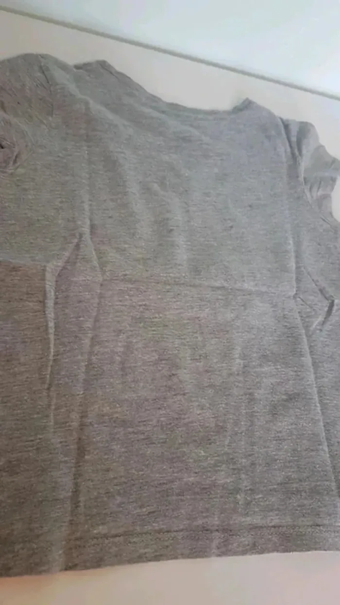 Bonjour, Tee shirt manches courtes Verbaudet Taille 5 ans. Couleur gris avec motif blanc et rose. Très bon état #33coco_fille5ans