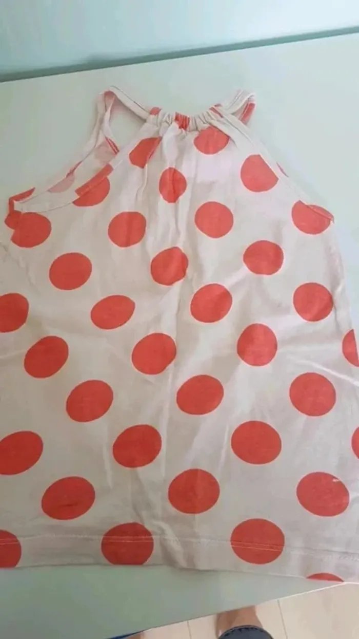 Bonjour, Débardeur fille taille 5 ans. Kiabi Blanc a pois Orange. Très bon état. #33coco_fille5ans