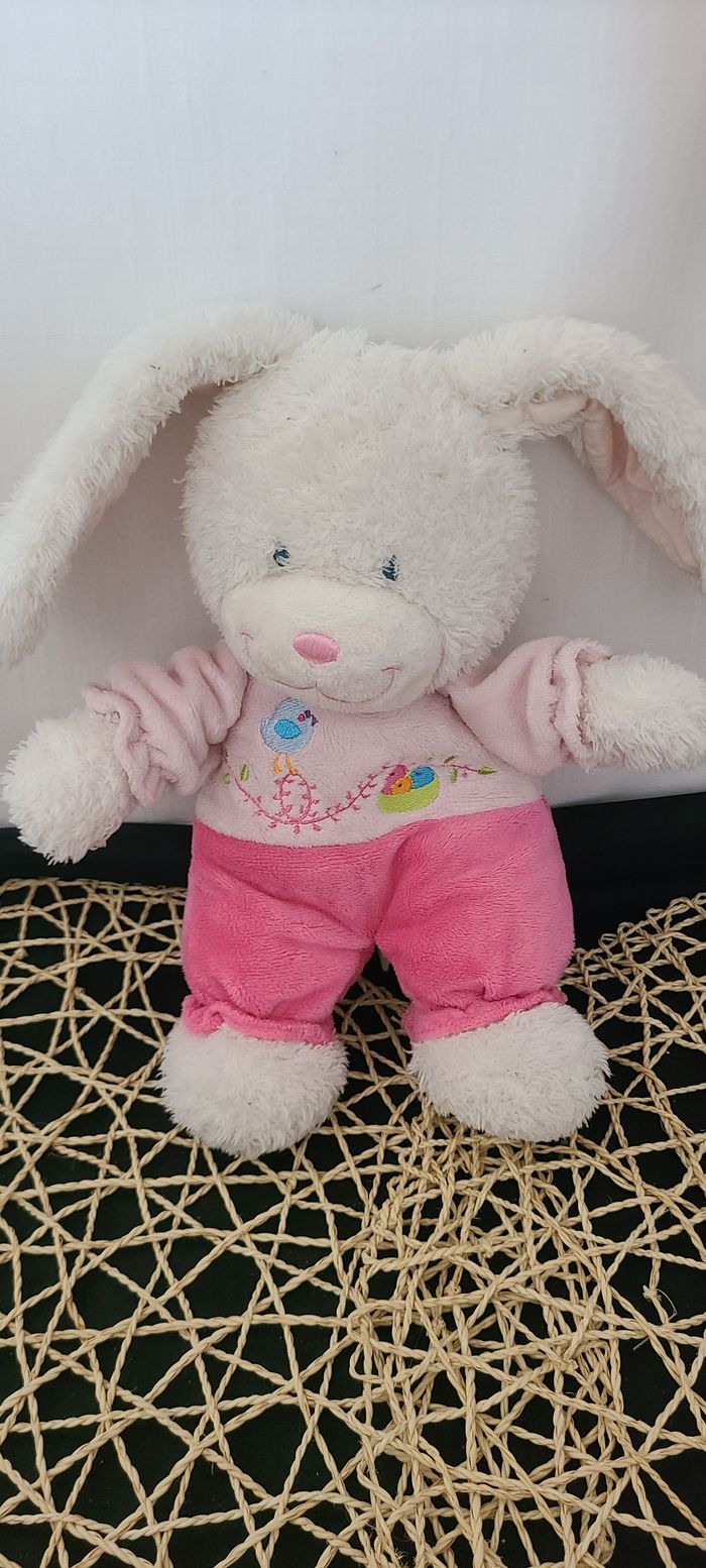 Doudou Peluche Lapin blanc Robe rose Tex Baby CMI Carrefour oiseau nid brodés
