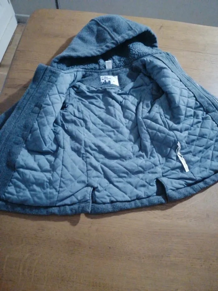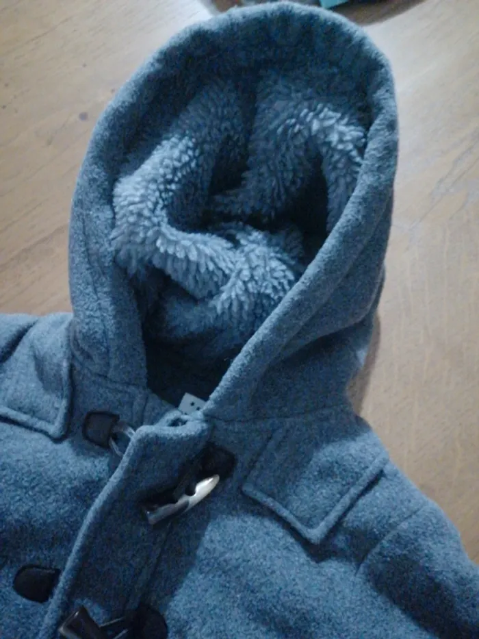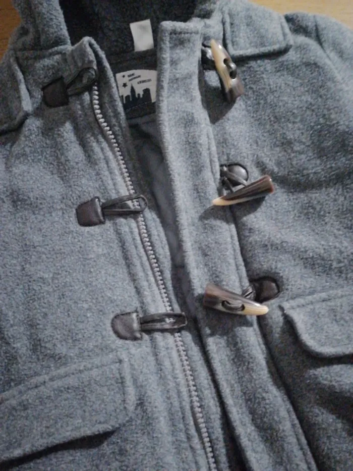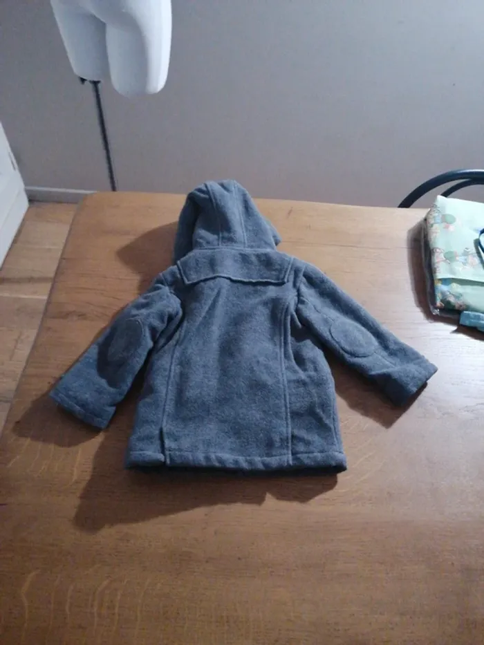 #marion_33670garçon Manteau à capuche gris. Fermeture éclair et boutons. Marque tex Taille 23mois