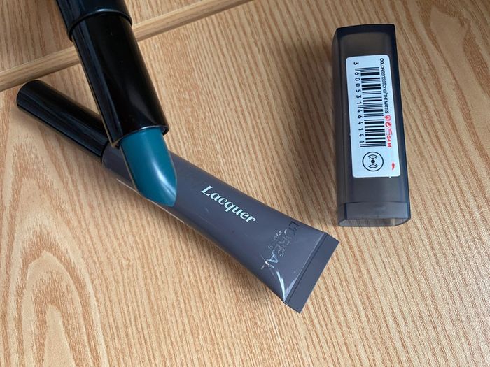 1 rouge à lèvres un peu vert gris l’oreal Ultra mate 45 smoky jade 1 rouge à lèvres liquide tons gris Lip paint lacquer 108 smokey grey