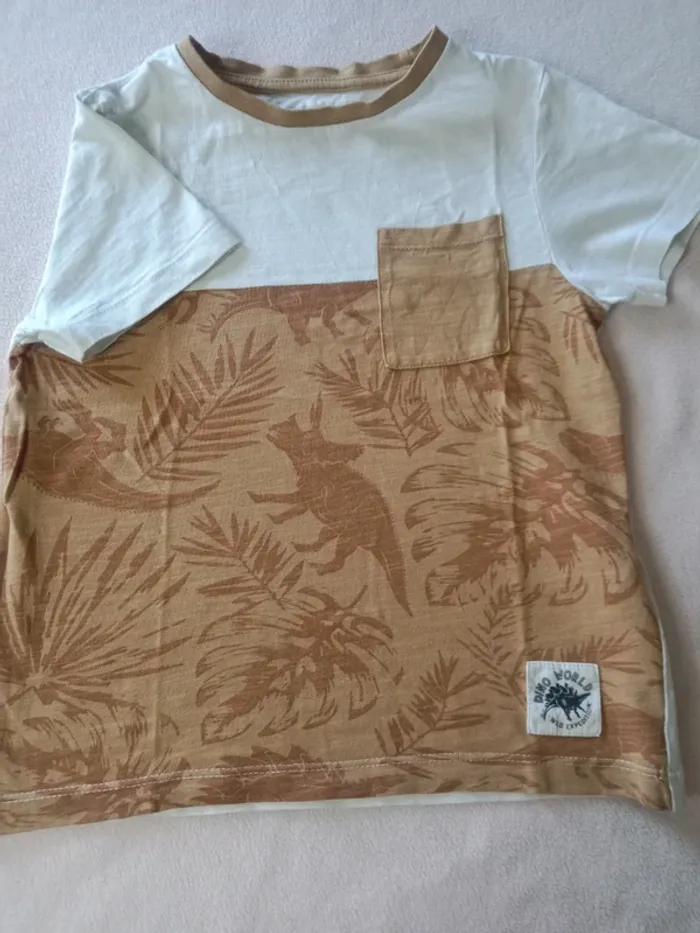 Tshirt dinosaure 6 ans Blanc/ marron clair #klek87_taille6ans #tshirtdinosaure