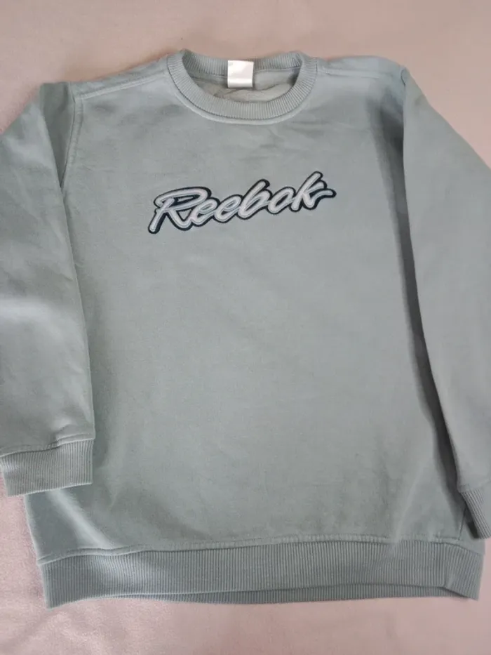 Pull vintage Reebok Bleu ciel Taille 14 ans Légère tâche sur le devant et sur la manche droite voir photos #klek87_taille14ans #reebokvintage #reebok14ans