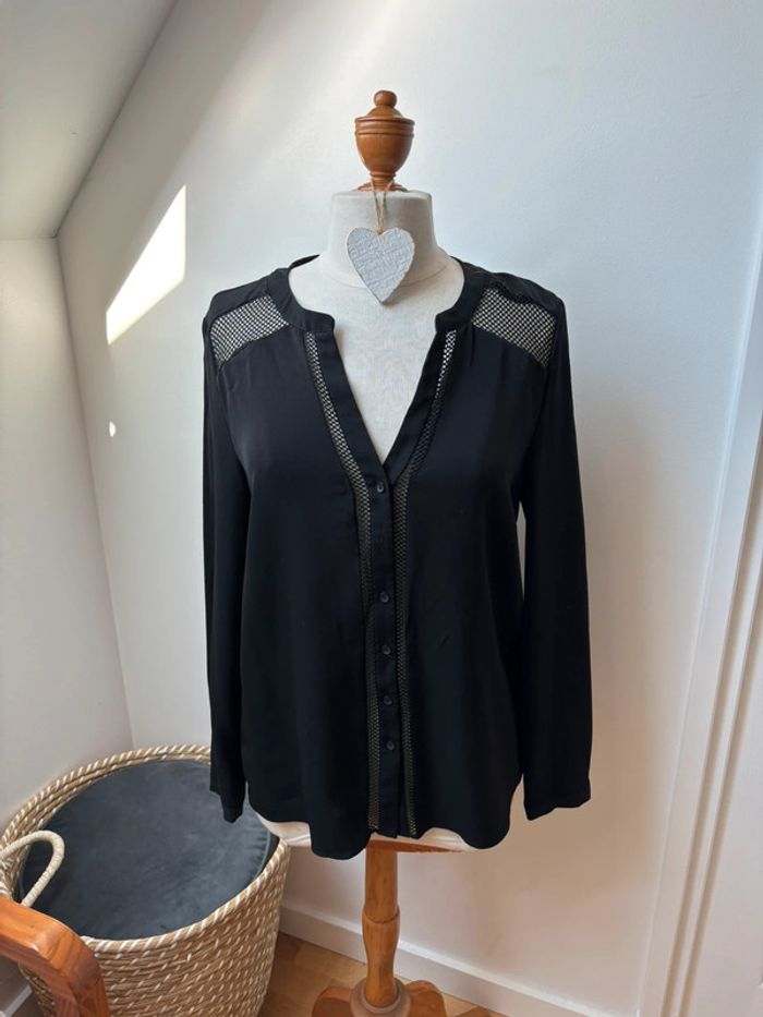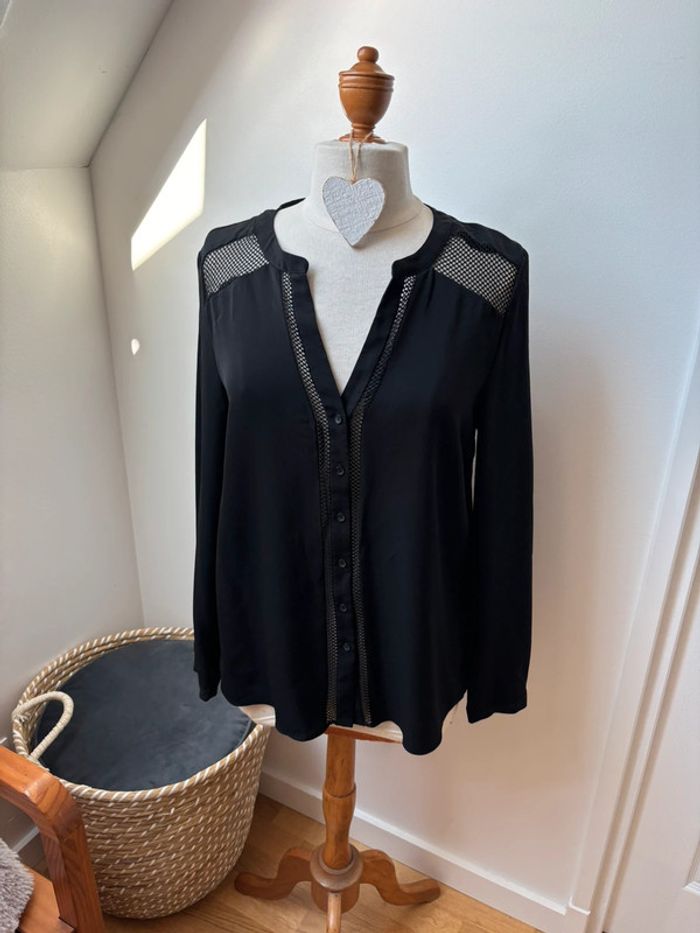 Blouse boutonnée ML noire dentelle - Sud Express - L - photo numéro 1