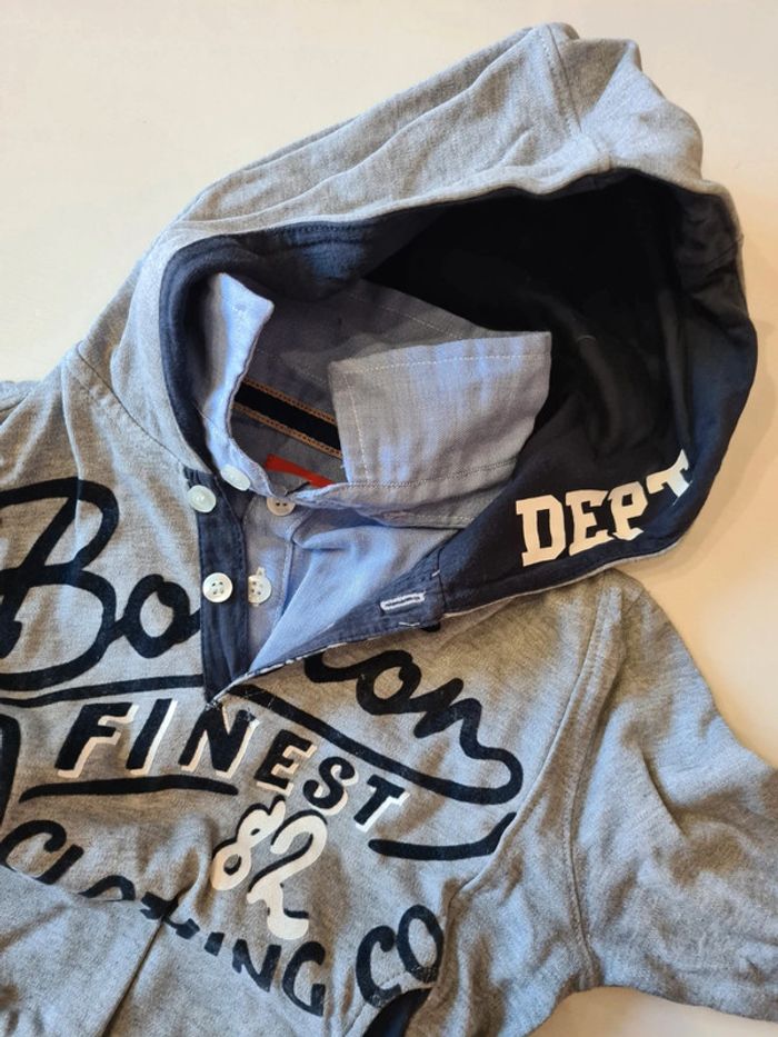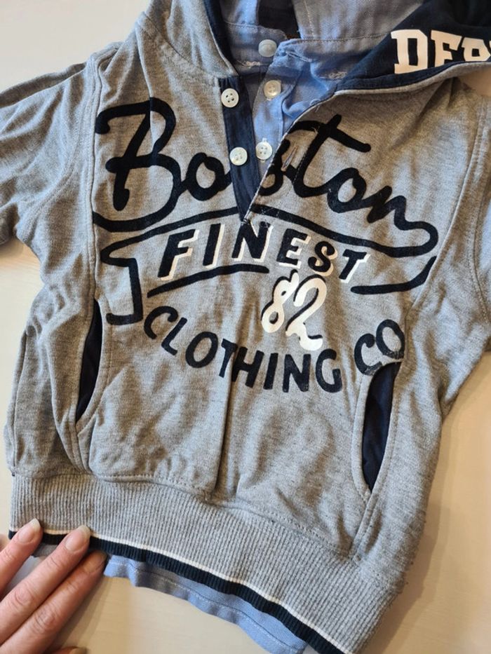 En très bon état pull a capuche doublé col et manche chemise 3 ans tissaia