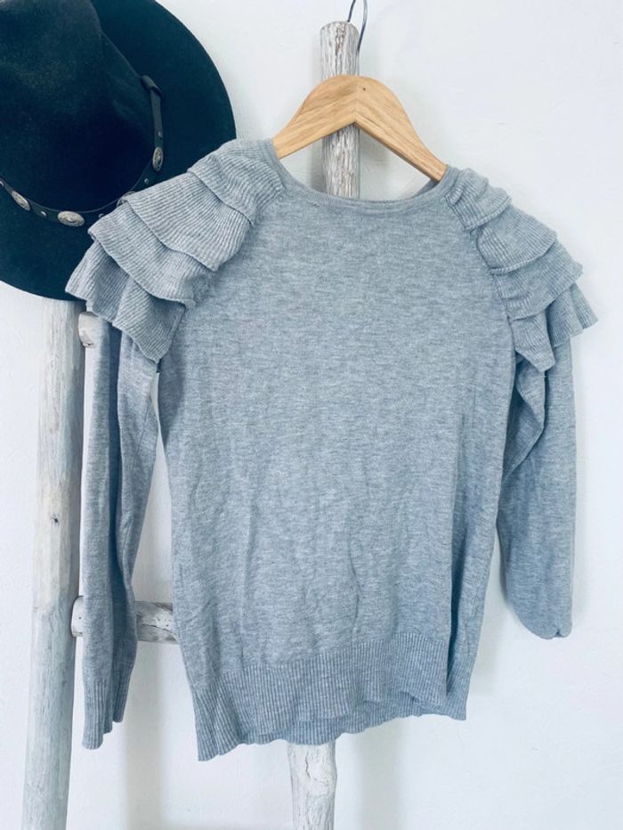 Pull gris Col rond Manche avec volants XS Étiquette coupée