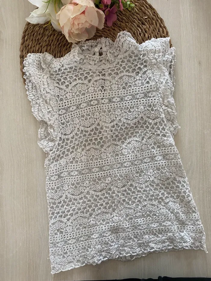 Haut dentelle Blouse broderie Col montant Sans manches Taille xs