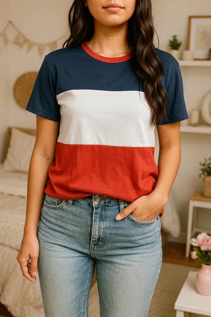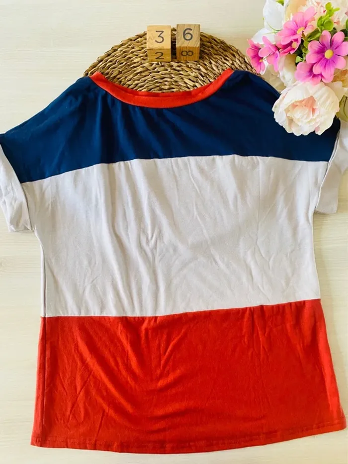 T-shirt à manche courte tricolore Bande rayé Taille s