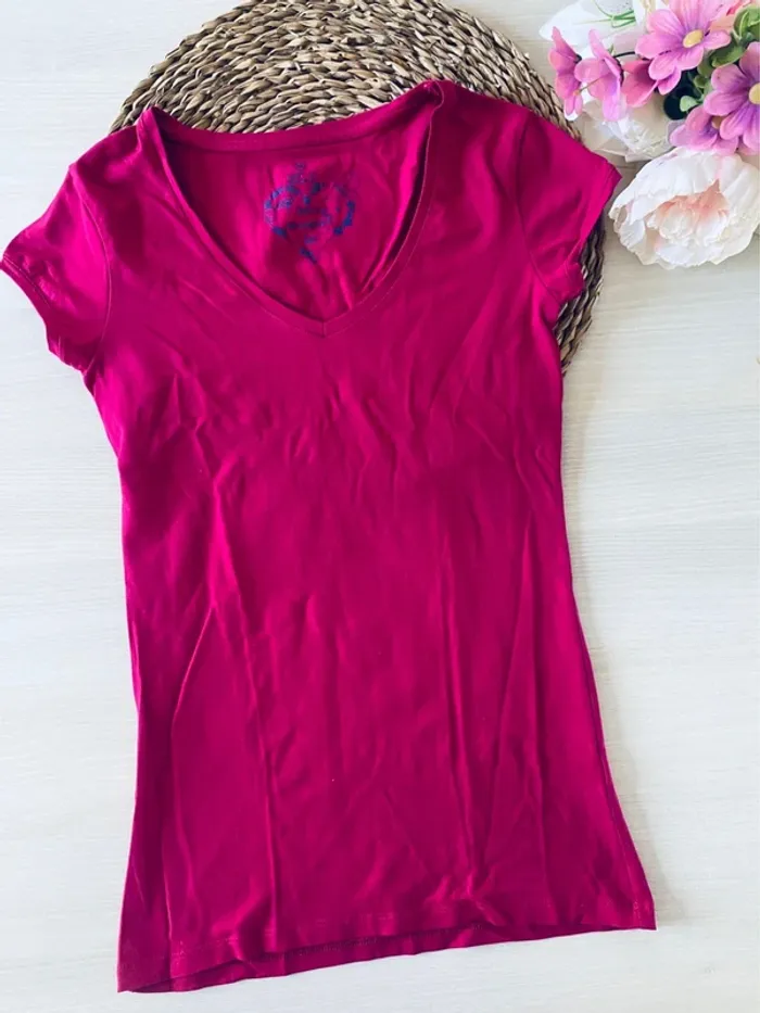T-shirt rose manche courte Fushia Col V Taille 34