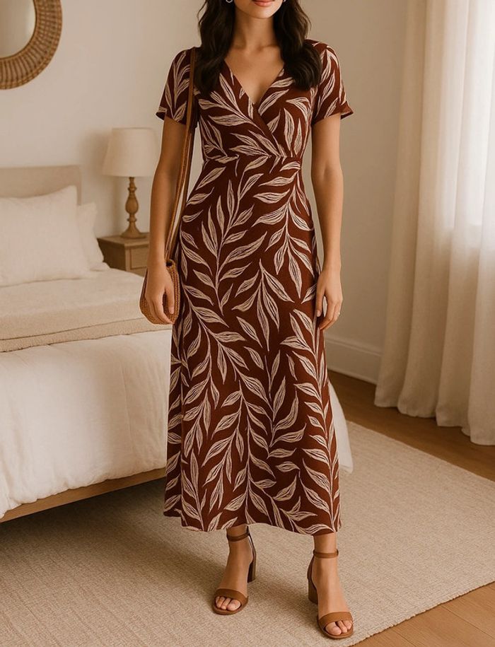 Robe longue type gaze de coton Imprime feuille tropical Col V Taille xs État neuf