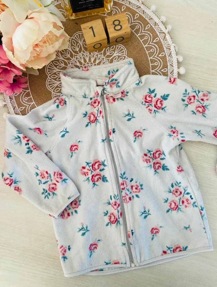 Gilet zippe Veste polaire fleurie 18/24 mois